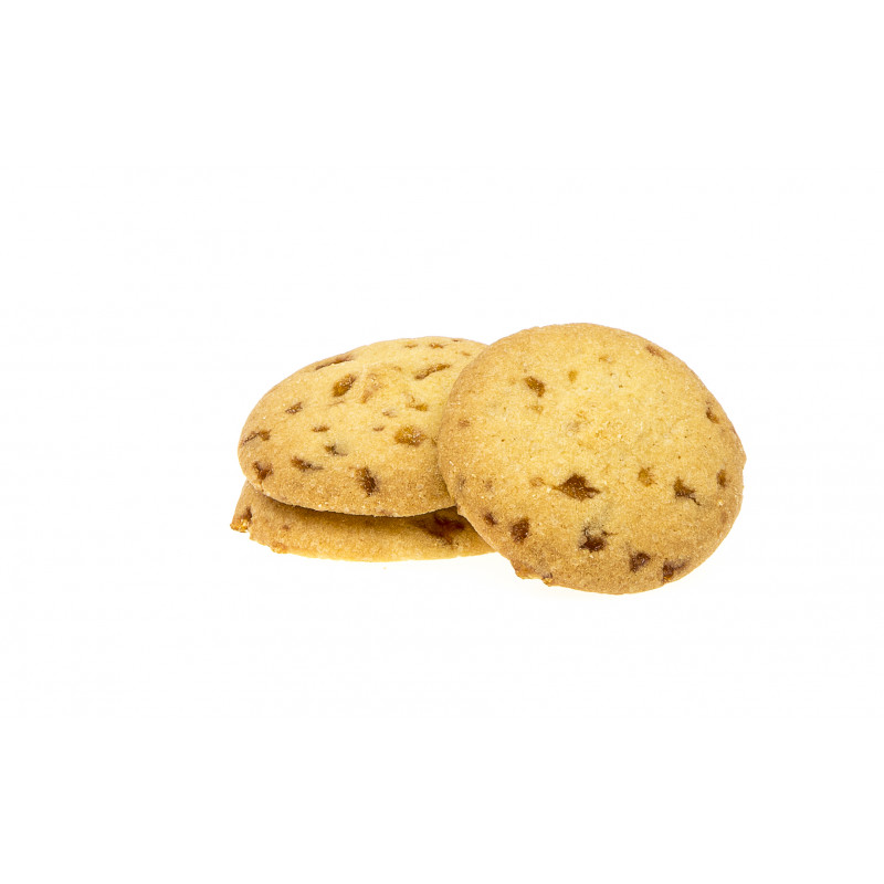 Un délicieux sablé rond aux éclats de caramel au beurre salé et sans gluten.