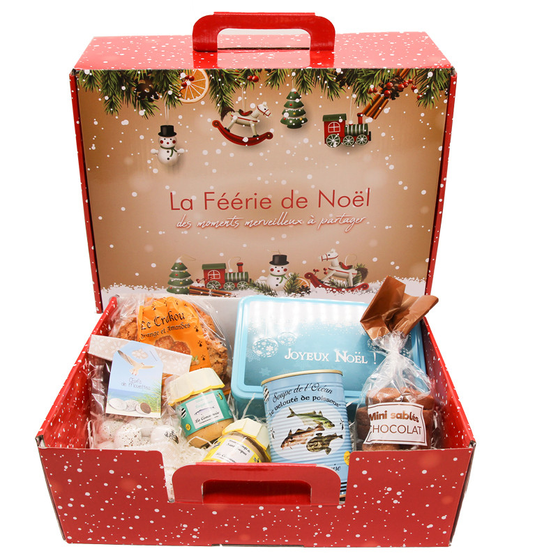 Présenté dans un coffret festif, ce panier gourmand réunit tout le savoir-faire artisanal breton : biscuits, confiseries, rillettes et douceurs de la mer.