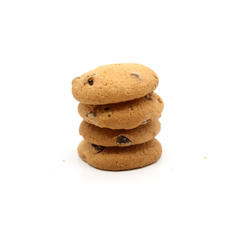 Ingrédients : farine de blé, sucre, beurre de baratte, oeufs, pépites de chocolat 6,9 % (sucre, pâte de cacao, beurre de cacao, émulsifiant: lécithine de tournesol), arôme vanille, sel de Guérande, poudre de lait, poudre à lever (E450i, E500ii, amidon de blé, E341iii), bicarbonate de sodium, bicarbonate d'ammonium.